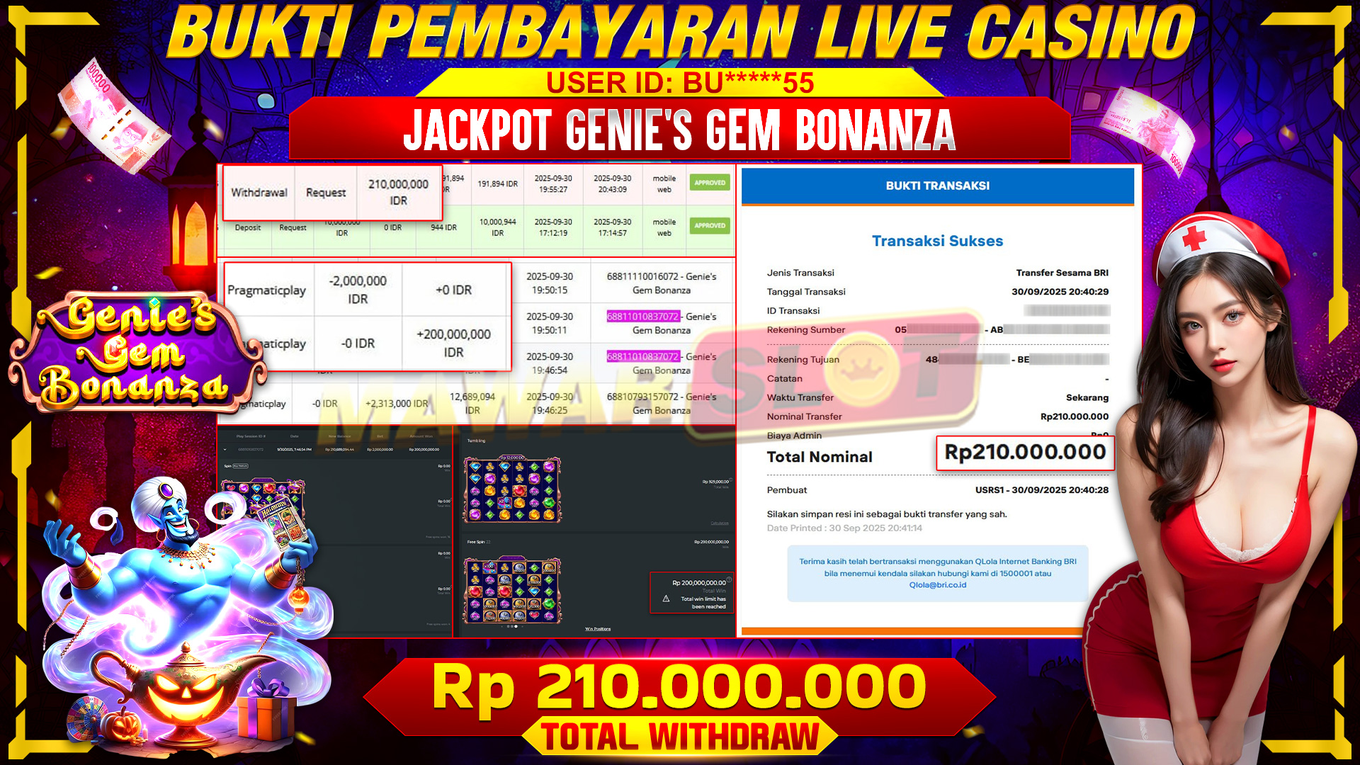 Dari dalam gua harta karun yang tersembunyi, BUL***** berhasil membangkitkan kekuatan Sang Jin! Dengan sebotol penuh keberanian dan strategi jitu, petualangan dimulai di gulungan Genie's Gem Bonanza.